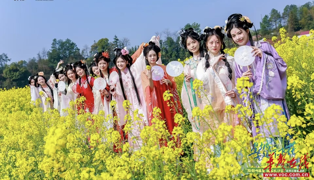 现场,长沙歌舞剧院带来送戏下乡惠民演出,在花海中唱响春天。“花式巡游”NPC互动体验梦幻开启,十二“花神”一同品美味、逛市集,与油菜花海相映成趣。“TA在丛中笑”长沙赏花美图征集、“花花世界”星城风物大集、“把春天绘进雨伞”花田艺术创想、花田时尚T台秀、五福村宴等活动,集文艺表演、特色美食、非遗体验、互动娱乐等于一体,共同奏响春日的美妙乐章。
