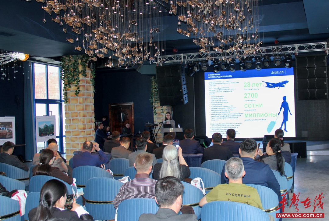 现场,阿拉木图州旅游信息中心、招商局,阿拉套市,SCAT航空公司,阿拉木图州旅游企业分别介绍了阿拉木图州旅游资源、招商政策,阿拉套特区整体建设规划,国际航线开设情况和旅游产品情况。