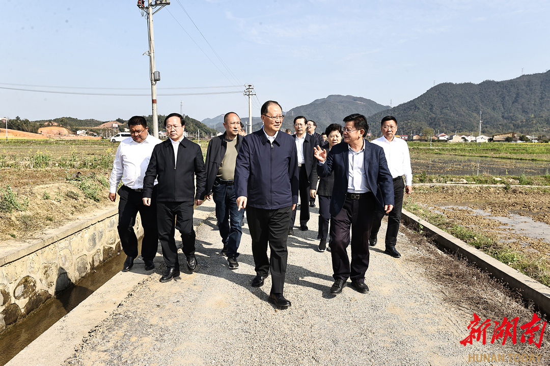 毛伟明在浏阳市省级粮食生产万亩综合示范片检查春耕生产。