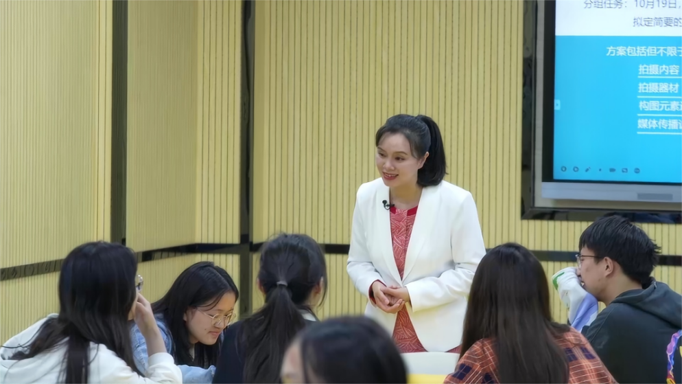 时常将课堂交给学生,并不意味着曾志华在备课上的放松。在日常生活中,她时刻注意捕捉与课程紧密相关的时事热点素材,并迅速将其记录下来,巧妙地融入教学之中。她引领同学们欣赏、模仿并自主分析这些生动案例,待同学们掌握基本拍摄规律后,再鼓励他们在此基础上大胆构思,勇于创新。