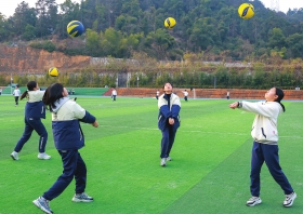 1月6日,长沙市立信中学,体育课上初三女生在进行排球训练。图/通讯员凌红英