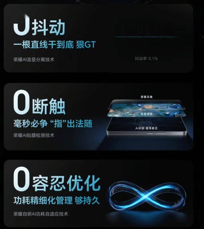 另外在性能方面,荣耀 GT 将首发荣耀自研幻影引擎,支持「重载游戏 0 抖动」、「贴膜场景 0 断触」、「功耗优化 0 容忍」特性。同时这款手机最高还将搭载“LPDDR5X + UFS4.0”的内存组合,结合骁龙 8 Gen3,能够带来的性能和电竞游戏体验无疑令人期待。