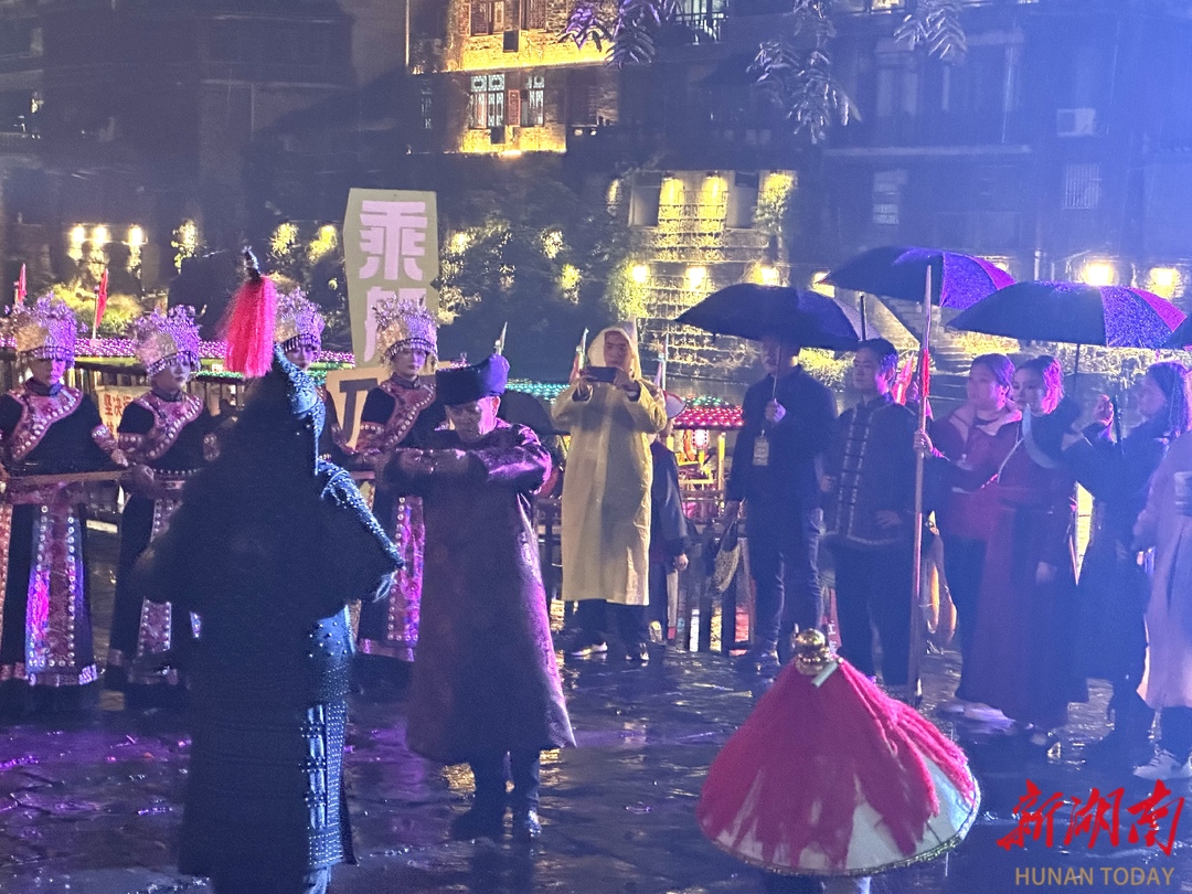 12月4日晚,“探索吉首魅力·共享文化之旅”吉首市2025年文化旅游推介精品旅游线路考察活动,走进湘西土家族苗族自治州吉首市乾州古城景区。全国各地100余家战略品牌合作代表、旅行社代表、研学党建机构代表,踏上青石板路,透过斑驳的墙垣,门窗上朱漆木刻花纹,追寻历史的脉络。