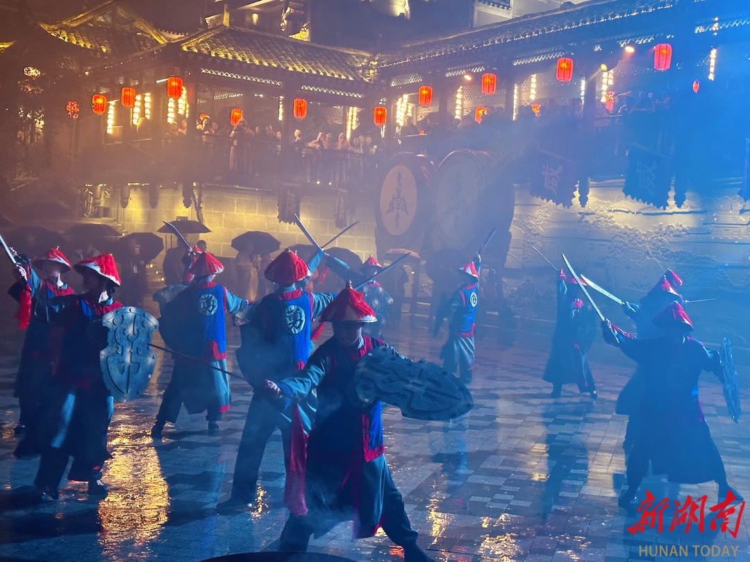 巫傩堂宾朋满座,《乾城非遗秀》演出精彩纷呈,表演将土家山歌、打溜子、苗歌、土家织锦技艺等国家级、省级非遗项目与舞美声光电融合,展示湘西非物质文化的独特魅力。