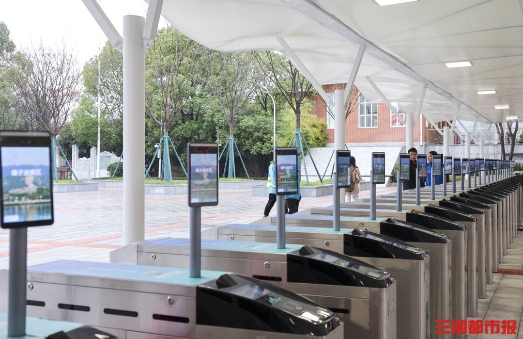 同时,景区还进一步优化了地铁口周边区域的游览线路,首次将地铁橘子洲站入口(进站)和出口(出站)分设在景区内、外两个区域,所有出站游客通过景区入口闸机刷脸完成预约验证后,即可快速进入景区。游览结束后,游客在景区内即可乘坐地铁离洲。在此基础上,景区通过栏杆等基础设施的硬质隔离合围,实现了内外部区域的闭环管理,真正将 “非预约不入园”举措落到实处。
