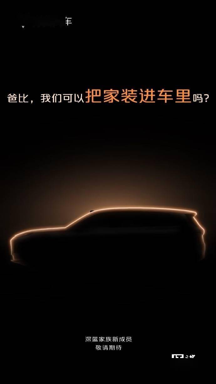 今日深蓝汽车官方也发布了全新 SUV 的预告图,图片显示这款新车采用全新设计风格,号称“把家装进车里”,预计为 6 座或 7 座设计。目前,深蓝旗下的 SUV 车型包括 S05、S07 和 G318 三款,分别定位为紧凑型、中型和中大型 SUV,三款车型均采用 2+3 式 5 座布局。