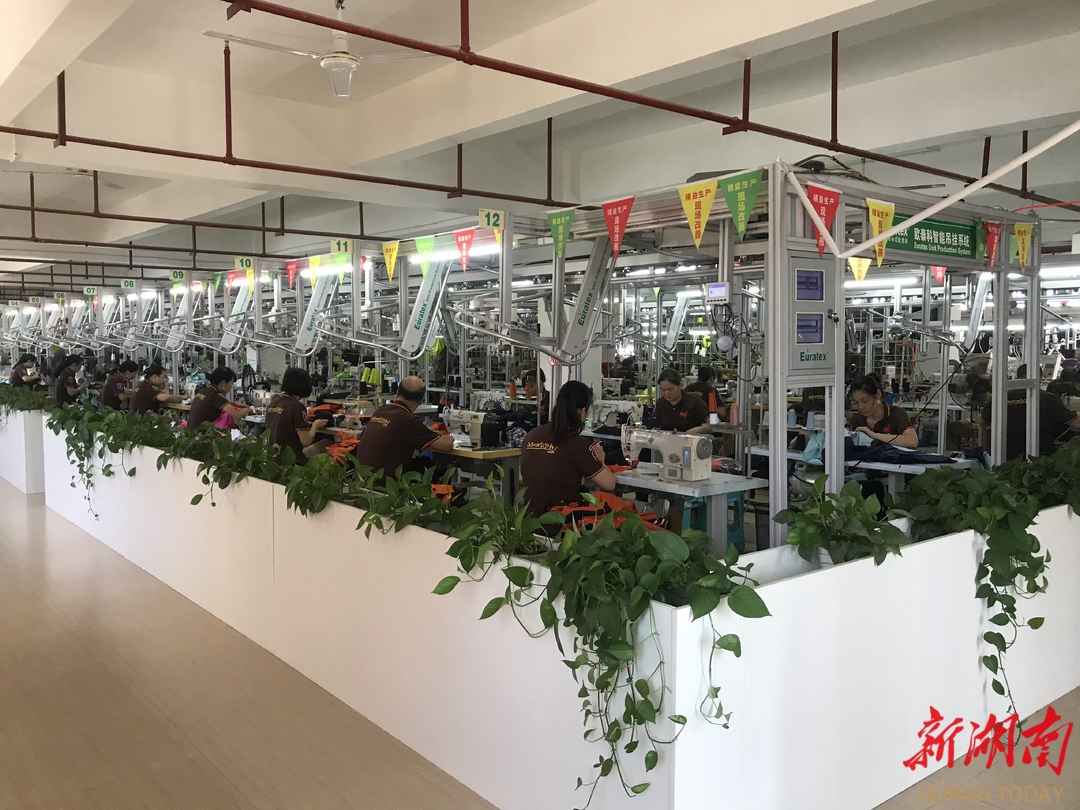 11月1日,配备智能吊挂系统和”智衣通“的湖南远赢服饰有限公司制衣车间 通讯员 摄