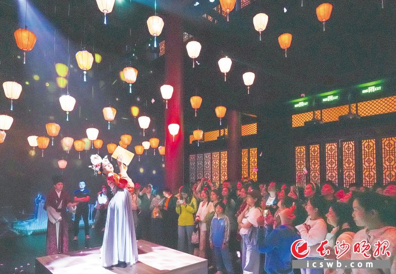 焕新升级的杜甫江阁,上演江南“喜相逢”,上新江阁“唐装秀”,给旅客带来沉浸式体验;橘子洲的《恰同学少年》、“江天暮雪”等IP,运用多媒体艺术表达,以“沉浸式+互动式”的模式,让游客在长沙地标有了全新文旅体验;在长沙铜官窑国风乐园,非遗打铁花、飞天火壶、火刀表演、炭花舞等众多国风表演精彩亮相,让游客在“中式夜游”中体验传统文化魅力;在长沙方特东方神画,一批以传统文化为底色的高科技沉浸式演艺节目让游客在游乐中感受到了民俗文化的魅力。