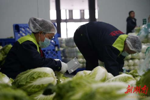 在该公司蔬菜仓储冷链中心,白菜被整齐地摆放着,两三人一组围着操作台,对原材料进行初加工和分装,确保第一时间出山进城。“订单白菜从地里到基地之后,进行预冷,去除磨损的叶子二次包装,保证新鲜度和质量,然后发车前往粤港澳大湾区。”公司产业部部长吴应忠说。