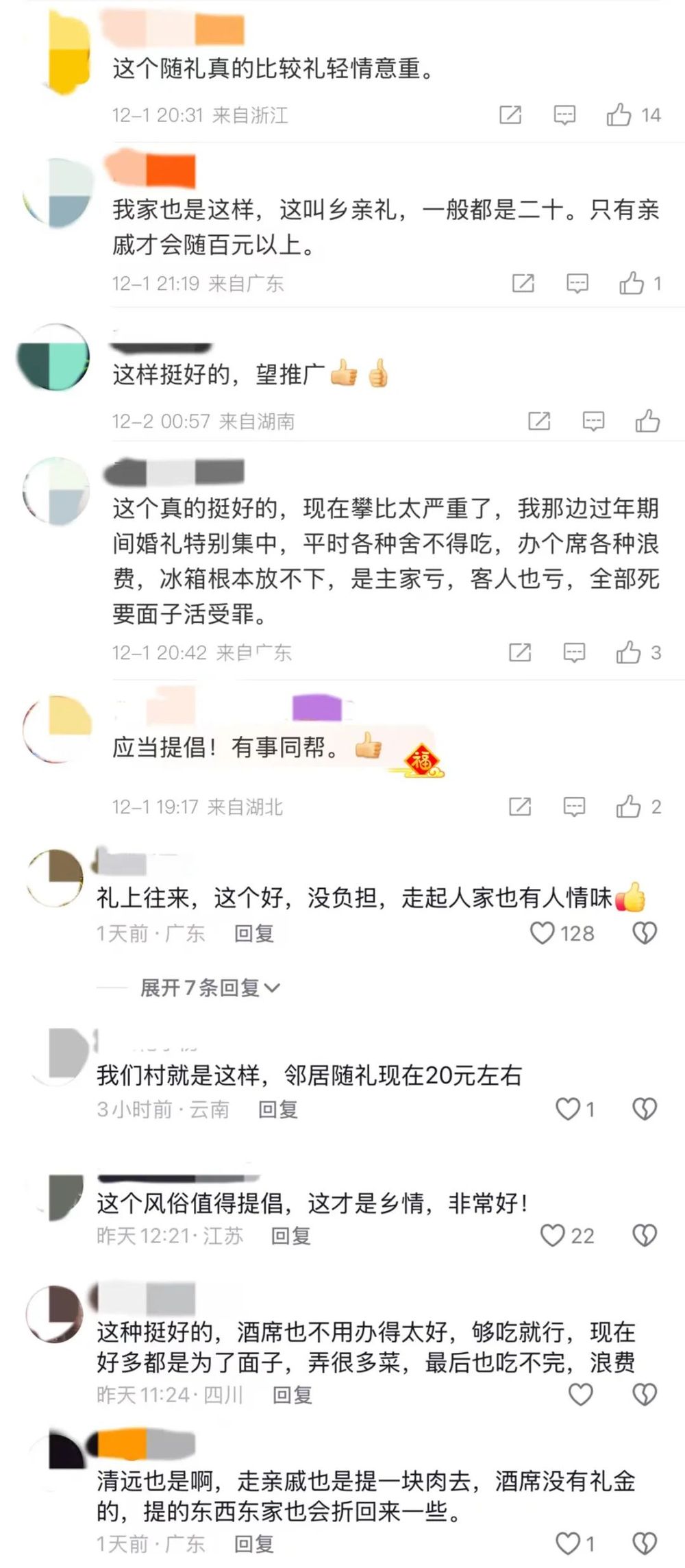 近日#湖南一村庄酒席流行一斤肉价随礼#登上各大平台热搜榜,引发网友热议。据悉,这一随礼风俗在湖南省株洲市茶陵县高陇镇龙匣村盛行,村民办酒时,乡亲们按当下一斤肉的价格,折现送上礼金。