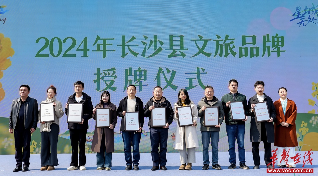 在文旅产品推介中,长沙县发布了路口温泉、松雅湖文体中心、安沙水渡河街区、国歌体验园等招商项目,覆盖康养旅游、体育旅游、乡村旅游、红色旅游等领域,诚邀广大客商来星沙奔赴星辰大海。现场还举行了2024年长沙县文旅品牌授牌仪式,为成功创建文旅品牌的9家单位颁发荣誉牌匾。